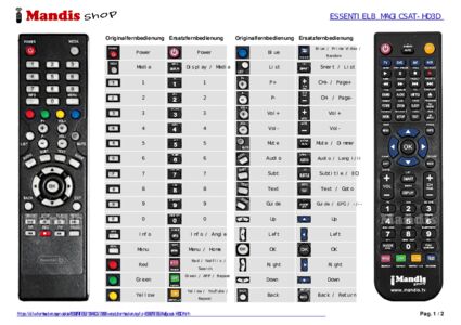 Ein Dokument ist enthalten, um die Verwendung der neuen Fernbedienung zu erleichtern, indem es die Tastenbelegung zeigt.