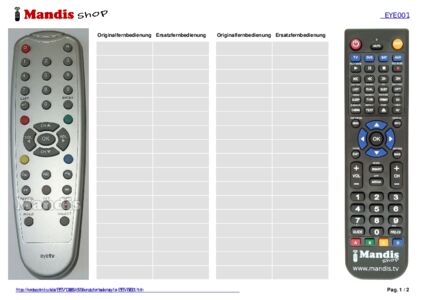 Diese Fernbedienung ersetzt Ihre EYE001 in vollem Umfang und bietet alle Funktionen des Originals.