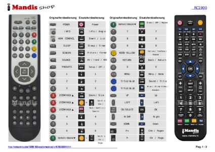 Diese Fernbedienung ersetzt Ihre RC-1900 (30063114) in vollem Umfang und bietet alle Funktionen des Originals.