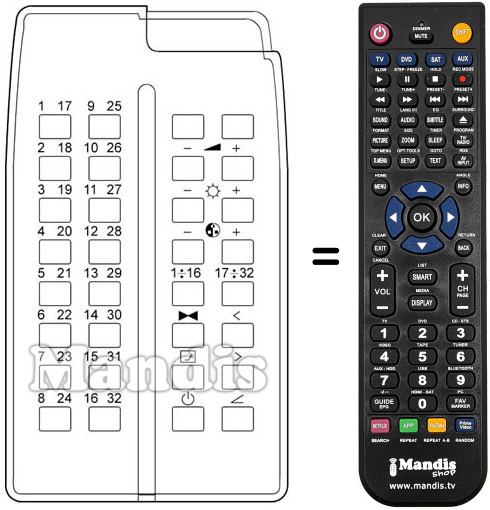 Es handelt sich jedoch nicht um eine Universalfernbedienung sondern um eine Fernbedienung die das Original ersetzt.