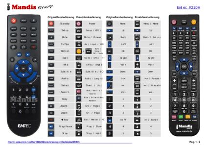 Ein Dokument ist enthalten, um die Verwendung der neuen Fernbedienung zu erleichtern, indem es die Tastenbelegung zeigt.
