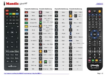 Diese Fernbedienung ersetzt Ihre ENE005 in vollem Umfang und bietet alle Funktionen des Originals.