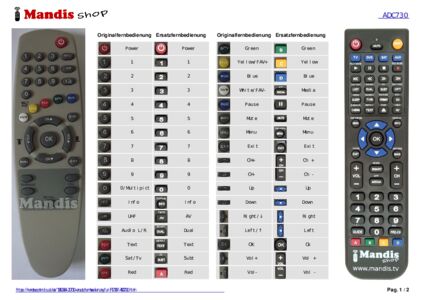 Diese Fernbedienung ersetzt Ihre RT7367 (ADC730) in vollem Umfang und bietet alle Funktionen des Originals.