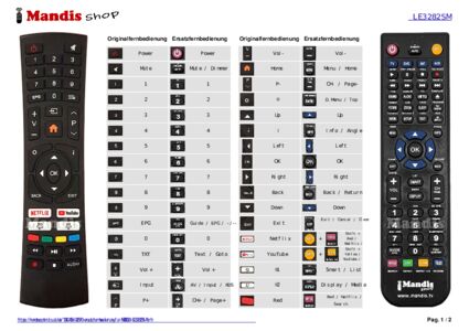 Ein Dokument ist enthalten, um die Verwendung der neuen Fernbedienung zu erleichtern, indem es die Tastenbelegung zeigt.