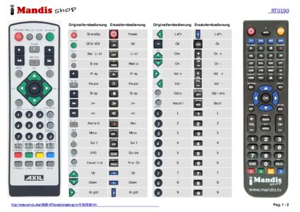 Ein Dokument ist enthalten, um die Verwendung der neuen Fernbedienung zu erleichtern, indem es die Tastenbelegung zeigt.