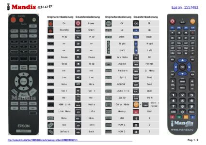 Diese Fernbedienung ersetzt Ihre EH-TW6000W (1557492) in vollem Umfang und bietet alle Funktionen des Originals.