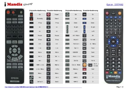 Home > Marken > Fernbedienungen Epson > Fernbedienung für Epson 1557492