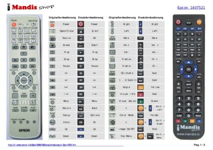 Home > Marken > Fernbedienungen Epson > Fernbedienung für Epson 1407521