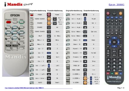 Home > Marken > Fernbedienungen Epson > Fernbedienung für Epson 145663900