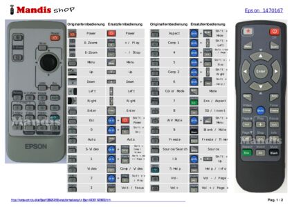 Home > Marken > Fernbedienungen Epson > Fernbedienung für EPSON 1470167 (147016700)