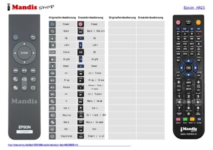 Home > Marken > Fernbedienungen Epson > Fernbedienung für Epson HA23