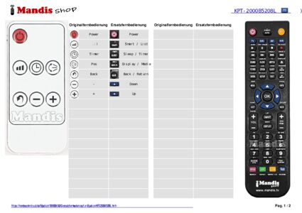 Diese Fernbedienung ersetzt Ihre KPT-2000B 5208L in vollem Umfang und bietet alle Funktionen des Originals.