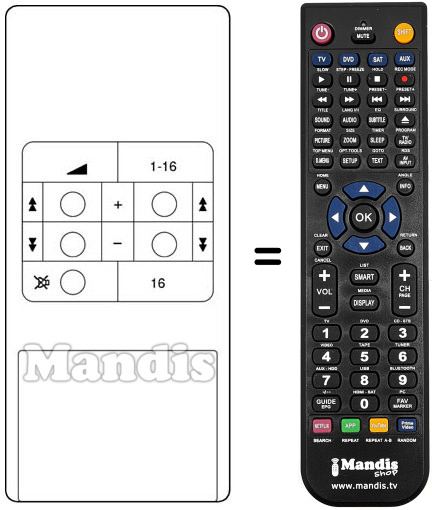 Fernbedienung, die das Original und die Gesamtheit seiner Funktionen, vollständig ersetzt. Es handelt sich jedoch nicht um eine Universalfernbedienung sondern um eine Fernbedienung die das Original ersetzt. Sie erhalten eine nach Einlegen der Batterien sofort einsatzbereite Fernbedienung. Jegliches Programmieren entfällt. Wir geben umfassende Garantie dafür, dass diese Fernbedienung alle Funktionen der Originalfernbedienung erfüllt.
