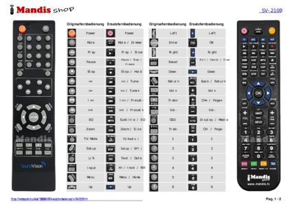 Ein Dokument ist enthalten, um die Verwendung der neuen Fernbedienung zu erleichtern, indem es die Tastenbelegung zeigt.