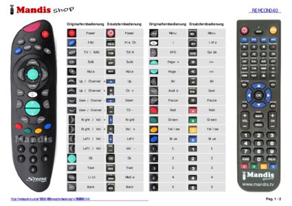 Ein Dokument ist enthalten, um die Verwendung der neuen Fernbedienung zu erleichtern, indem es die Tastenbelegung zeigt.