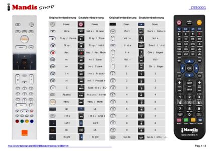 Ein Dokument ist enthalten, um die Verwendung der neuen Fernbedienung zu erleichtern, indem es die Tastenbelegung zeigt.