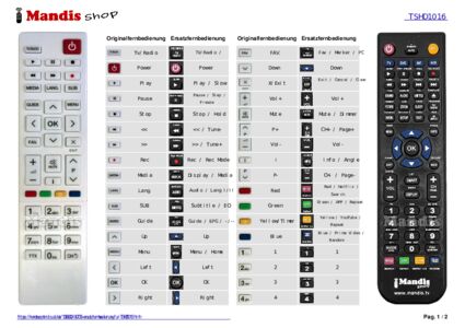 Diese Fernbedienung ersetzt Ihre TSHD1016 in vollem Umfang und bietet alle Funktionen des Originals.