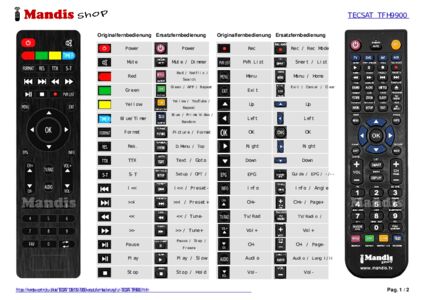 Ein Dokument ist enthalten, um die Verwendung der neuen Fernbedienung zu erleichtern, indem es die Tastenbelegung zeigt.