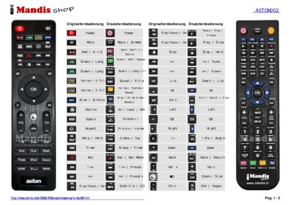 Ein Dokument ist enthalten, um die Verwendung der neuen Fernbedienung zu erleichtern, indem es die Tastenbelegung zeigt.