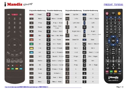 Diese Fernbedienung ersetzt die meisten Funktionen Ihres TSF 8500. Es ist keine Universalfernbedienung, sondern eine Kopie mit den meisten Tasten und Funktionen Ihres Originals.