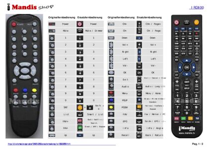 Ein Dokument ist enthalten, um die Verwendung der neuen Fernbedienung zu erleichtern, indem es die Tastenbelegung zeigt.