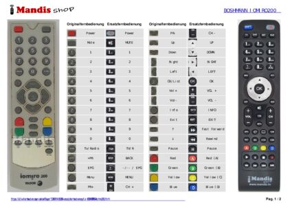 Ein Dokument ist enthalten, um die Verwendung der neuen Fernbedienung zu erleichtern, indem es die Tastenbelegung zeigt.