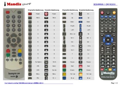 Ein Dokument ist enthalten, um die Verwendung der neuen Fernbedienung zu erleichtern, indem es die Tastenbelegung zeigt.