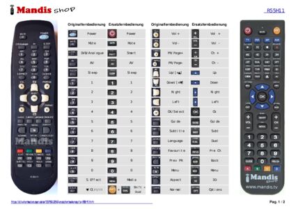 Ein Dokument ist enthalten, um die Verwendung der neuen Fernbedienung zu erleichtern, indem es die Tastenbelegung zeigt.