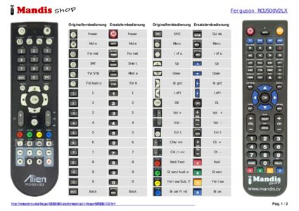 Ein Dokument ist enthalten, um die Verwendung der neuen Fernbedienung zu erleichtern, indem es die Tastenbelegung zeigt.