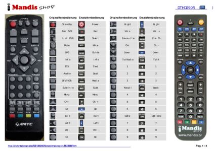 Ein Dokument ist enthalten, um die Verwendung der neuen Fernbedienung zu erleichtern, indem es die Tastenbelegung zeigt.