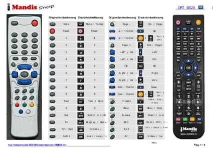 Diese Fernbedienung ersetzt Ihre ORT8820 in vollem Umfang und bietet alle Funktionen des Originals.