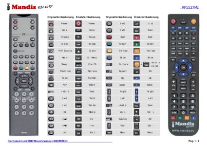 Ein Dokument ist enthalten, um die Verwendung der neuen Fernbedienung zu erleichtern, indem es die Tastenbelegung zeigt.