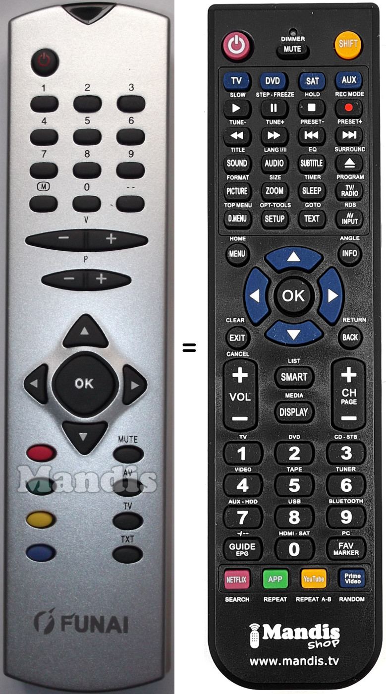 Die Fernbedienung ersetzt das Original RC1243 (20204028) in der Gesamtheit seiner Funktionen.