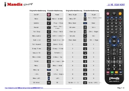 Ein Dokument ist enthalten, um die Verwendung der neuen Fernbedienung zu erleichtern, indem es die Tastenbelegung zeigt.