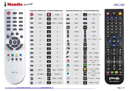 Ein Dokument ist enthalten, um die Verwendung der neuen Fernbedienung zu erleichtern, indem es die Tastenbelegung zeigt.