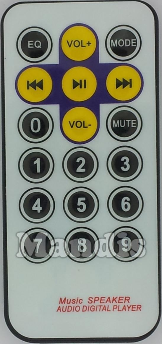 Mode, EQ, Vol+, Play/Pause, Vol-, >>I, I<<, o, Mute, 1, 2, 3, 4, 5, 6, 7, 8, 9