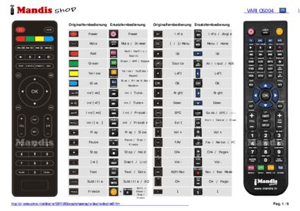 Ein Dokument ist enthalten, um die Verwendung der neuen Fernbedienung zu erleichtern, indem es die Tastenbelegung zeigt.