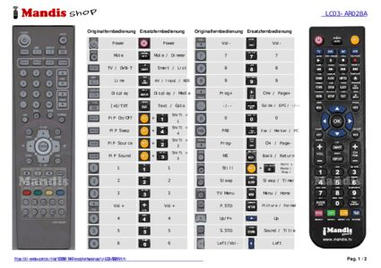 Ein Dokument ist enthalten, um die Verwendung der neuen Fernbedienung zu erleichtern, indem es die Tastenbelegung zeigt.