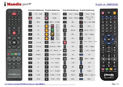 Ein Dokument ist enthalten, um die Verwendung der neuen Fernbedienung zu erleichtern, indem es die Tastenbelegung zeigt.