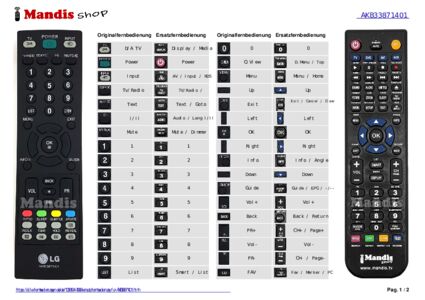 Ein Dokument ist enthalten, um die Verwendung der neuen Fernbedienung zu erleichtern, indem es die Tastenbelegung zeigt.