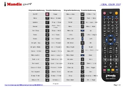 Ein Dokument ist enthalten, um die Verwendung der neuen Fernbedienung zu erleichtern, indem es die Tastenbelegung zeigt.