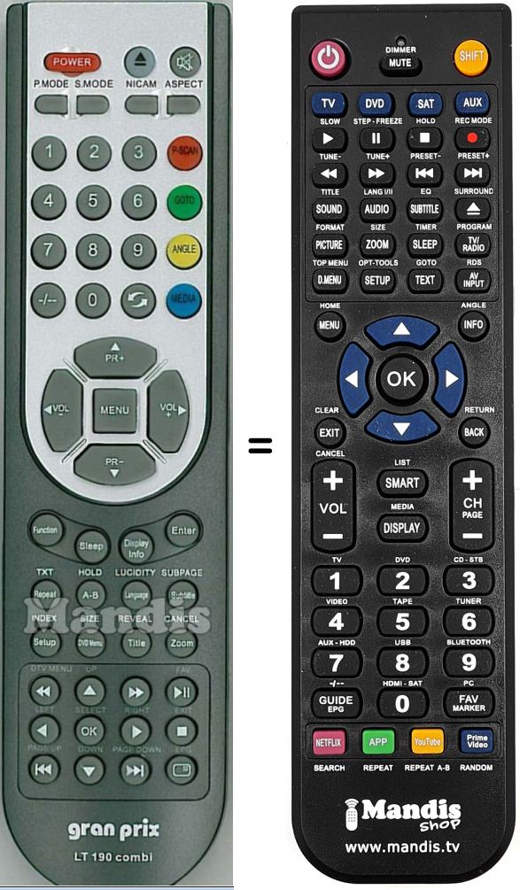 Die Fernbedienung ersetzt das Original LT190 combi in der Gesamtheit seiner Funktionen.