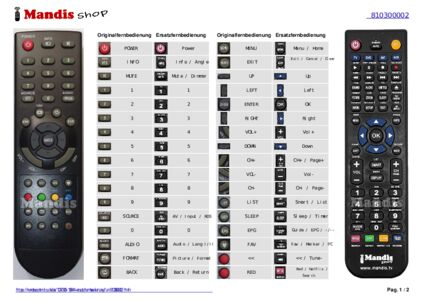 Ein Dokument ist enthalten, um die Verwendung der neuen Fernbedienung zu erleichtern, indem es die Tastenbelegung zeigt.