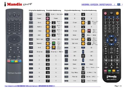 Ein Dokument ist enthalten, um die Verwendung der neuen Fernbedienung zu erleichtern, indem es die Tastenbelegung zeigt.