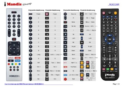 Ein Dokument ist enthalten, um die Verwendung der neuen Fernbedienung zu erleichtern, indem es die Tastenbelegung zeigt.