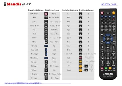Ein Dokument ist enthalten, um die Verwendung der neuen Fernbedienung zu erleichtern, indem es die Tastenbelegung zeigt.