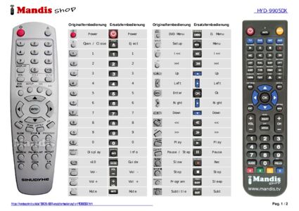 Diese Fernbedienung ersetzt Ihre HYD-9905DX in vollem Umfang und bietet alle Funktionen des Originals.