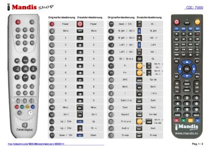 Ein Dokument ist enthalten, um die Verwendung der neuen Fernbedienung zu erleichtern, indem es die Tastenbelegung zeigt.