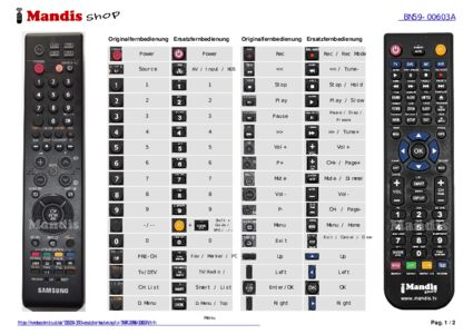 Ein Dokument ist enthalten, um die Verwendung der neuen Fernbedienung zu erleichtern, indem es die Tastenbelegung zeigt.