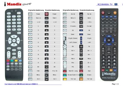Ein Dokument ist enthalten, um die Verwendung der neuen Fernbedienung zu erleichtern, indem es die Tastenbelegung zeigt.